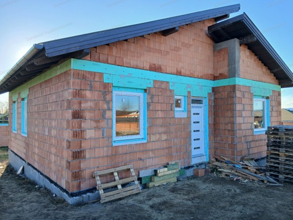 A ház tégla építésű + 12 cm dryvit szigeteléssel, hőszigetelt nyílászárókkal, hőszivattyús hűtés-fűtés rendszerrel épül meg.
